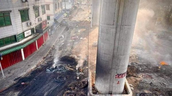 ရန်ကုန် - ၂၀၂၁ မတ် ၃ (ရန်ကုန်) လှိုင်မြို့နယ် အင်းစိန်လမ်းမအား ရဲတပ်ဖွဲ့များ လုံဖြုံရေးတင်းကျပ်ကာ မနက် ၉:၃၀ ခန့်က အသံဗုံးဖြင့်ဖြိုခွင်းပြီးနောက် ဆန္ဒပြသူများက ရွာမကျောင်းလမ်းအတွင်း ပြန်လည်းစုရုံးကာဆန္ဒပြလျက်ရှိသည်။ Credit: