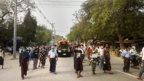 ဒလမြို့နယ်မှာမတ်၂၇ မနက်အစောပိုင်းပစ်ခတ်မှုအတွင်း ဒဏ်ရာရသူတစ်ဦး ထပ်မံသေဆုံး၊ သေဆုံးသူ ၇ဦးရှိလာ ဒလမြို့နယ်မှာ မတ်၂၇မနက်အစောပိုင်း ပစ်ခတ်မှုတွေကြောင့် ကျည်ထိမှန်ခဲ့သူတွေထဲက ၂၄နှစ်အရွယ်ရှိ မောင်အာကာဇော်မှာ မတ်၂၉ရက်ညပိုင်းက သေဆုံးသွားခဲ့တယ်လို့ မြို့ခံတွေထံကသိရပါတယ်။ သေဆုံးသူဟာ ဒလမြို့နယ် ကမာကဆစ်ရပ်ကွက်မှာနေထိုင်သူဖြစ်ပါတယ်။ " အဲဒီနေ့က ဒဏ်ရာရသူတွေထဲ မနက်အထိ ကုသမှုမခံရတဲ့သူတွေမနည်းဘူး။ ဘယ်သွားကုရမယ်မှန်းမသိကြဘူး။အဲဒီညက အံ့ကြီးရပ်ကွက်က ကုပေးတဲ့ဆရာဝန်ကိုလည်း နောက်နေ့ကျ စစ်တပ်က ဝင်ဆွဲတယ်။ ဆရာကတော့ရှောင်နေလို့ပါမသွားဘူး။ ဆေးရုံကလည်း ရဲစခနိးနဲ့ကပ်ရက်ဆိုတော့ ဘာမှလုပ်မရဘူး။ အခုသေတဲ့သူတွေထဲ ညတွင်းချင်းဆုံးတာ ၃ယောက်ပဲ အချိန်မီကုသမခံရလို့ ဆုံးတဲ့သူတွေလည်းရှိတယ်"လို့ ဒလမြို့ခံတစ်ဦးကပြောပြပါတယ်။ ဒလမြို့နယ်မှာ ပြီးခဲ့တဲ့မတိ၂၆ရက်နေ့က သမ္မတကမ်းခြေရပ်ကွက်ကအမျိုးသမီး၂ဦးကို ဆန္ဒပြရာမှာပါဝင်လို့ဆိုပြီး နေအိမ်တွေမှာဖမ်းဆီးခေါ်ဆောင်သွားရာကနေလပြန်လွှတိပေးဖို့တောင်းဆိုရာက လူစုလူဝေးဖြစ်ပေါ်မှုကြောင့် တပ်နဲ့ရဲပူးပေါင်းအဖွဲ့က ပစ်ခတ်ခဲ့တာဖြစ်ပြီး မတ်၂၇ရက်မှာ ၆ဦးသေဆုံးခဲ့ပြီး စုစုပေါင်း ၇ ဦးသေဆုံးသူရှိခဲ့ပါတယ်။ ပုံစာ-မတ်၂၇ရက်က သေဆုံးသူအချို့ရဲ့နာရေး Credit:
