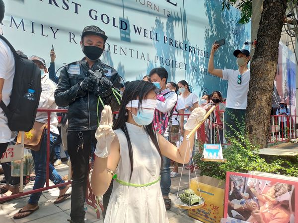ရန်ကုန်မြို့ သခင်မြပန်းခြံရှေ့မှာ ရွေးကောက်ပွဲရလဒ်ကိုကန့်ကွက်ပြီး တပ်မတော်ကိုထောက်ခံတဲ့ ဆန္ဒပြ (၂၈ ဇန်နဝါရီ ၂၀၂၁) ရန်ကုန်မြို့ သခင်မြပန်းခြံရှေ့မှာ လူဦးရေ (၁၁)ယောက်ပါအဖွဲ့မှ ရွေးကောက်ပွဲရလဒ်များ အလိုမရှိ ၊ တပ်မတော်အား ဝန်းရံထောက်ခံရေး ဆိုင်းဘုတ်များကိုင်ကာ ဆန္ဒထုတ်ဖော်။ Crd